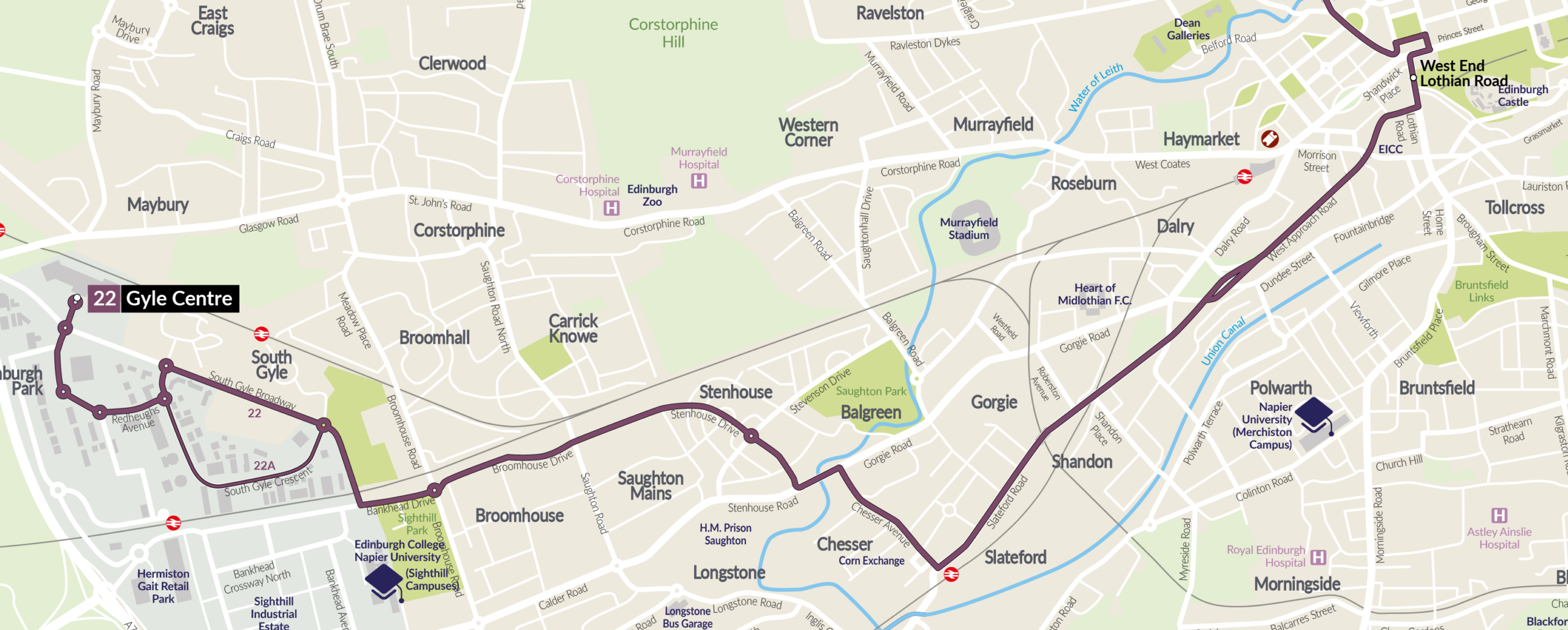Services 1 & 22 – between Balgreen Road and West Approach Road (22)/Fountainpark (1), buses will be diverted via Balgreen Road, Gorgie Road and Henderson Terrace in both directions.