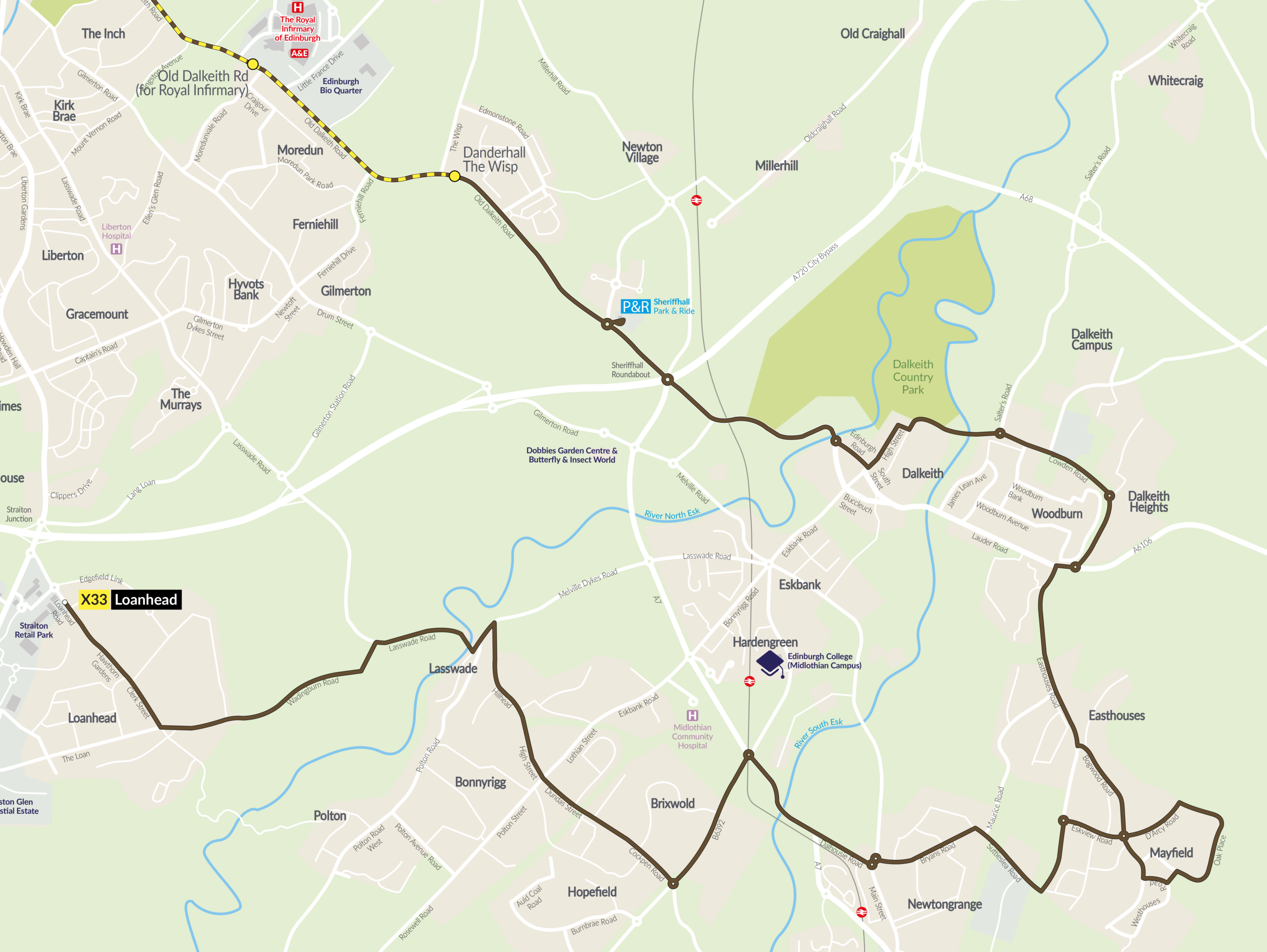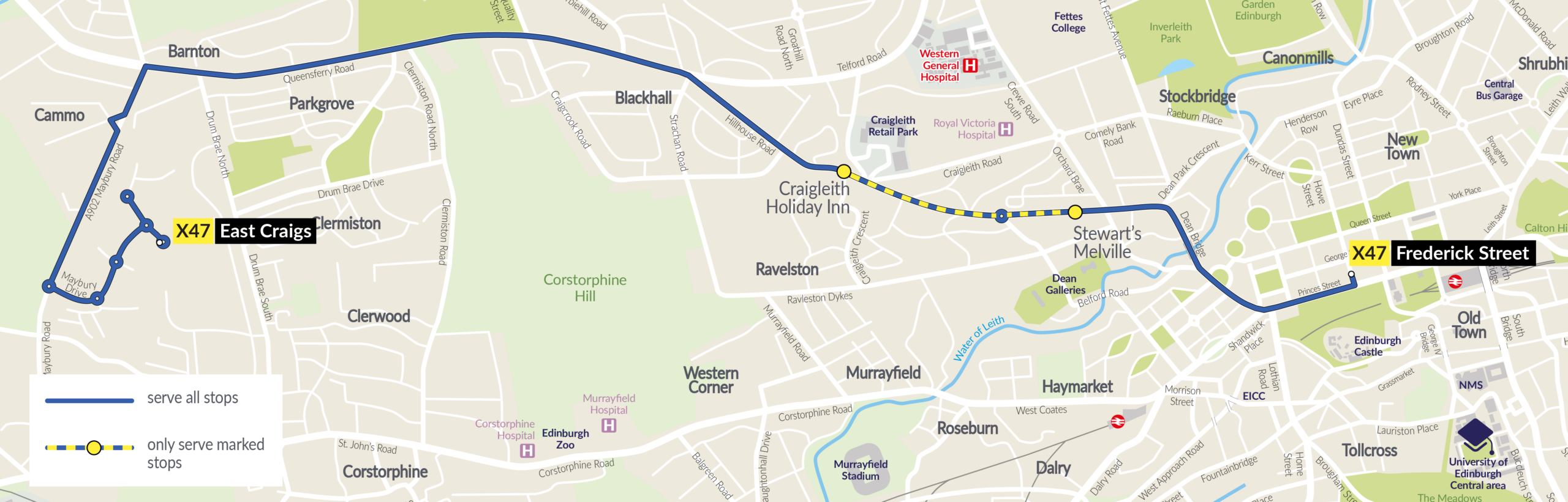 - To Corstorphine Road – Service X18 and Service X19.