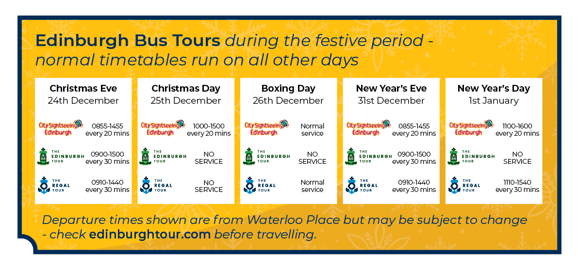 Waterloo TourHub will be open to Edinburgh Bus Tours customers over the festive period as follows: