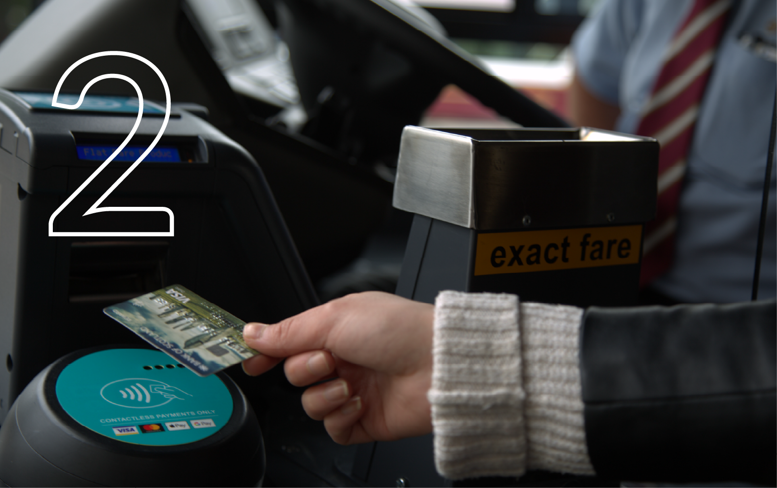 There are different ways to pay for your travel: Contactless, pre-purchased tickets using our app, season ticket Ridacards or cash (exact fare only).